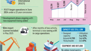 চলতি বছর অক্টোবর পর্যন্ত, টার্মিনালে জাহাজ আগমনের সংখ্যা উল্লেখযোগ্যভাবে বেড়েছে। শুধু আগস্ট মাসেই সাতটি জাহাজ ভিড়েছে। প্রথম ছয় মাসে রপ্তানি কনটেইনারের পরিমাণ ৫৩,৩৩২ টিইইউএস, যেখানে আমদানি কার্গো ৫৪,৮৯৬ টিইইউএস।